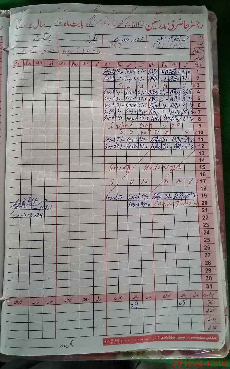 | Name: AB**** QA**** AT**** Designation: (School Headmaster's/Headmistress's) PST Phone/Cell Number: 03**** |
