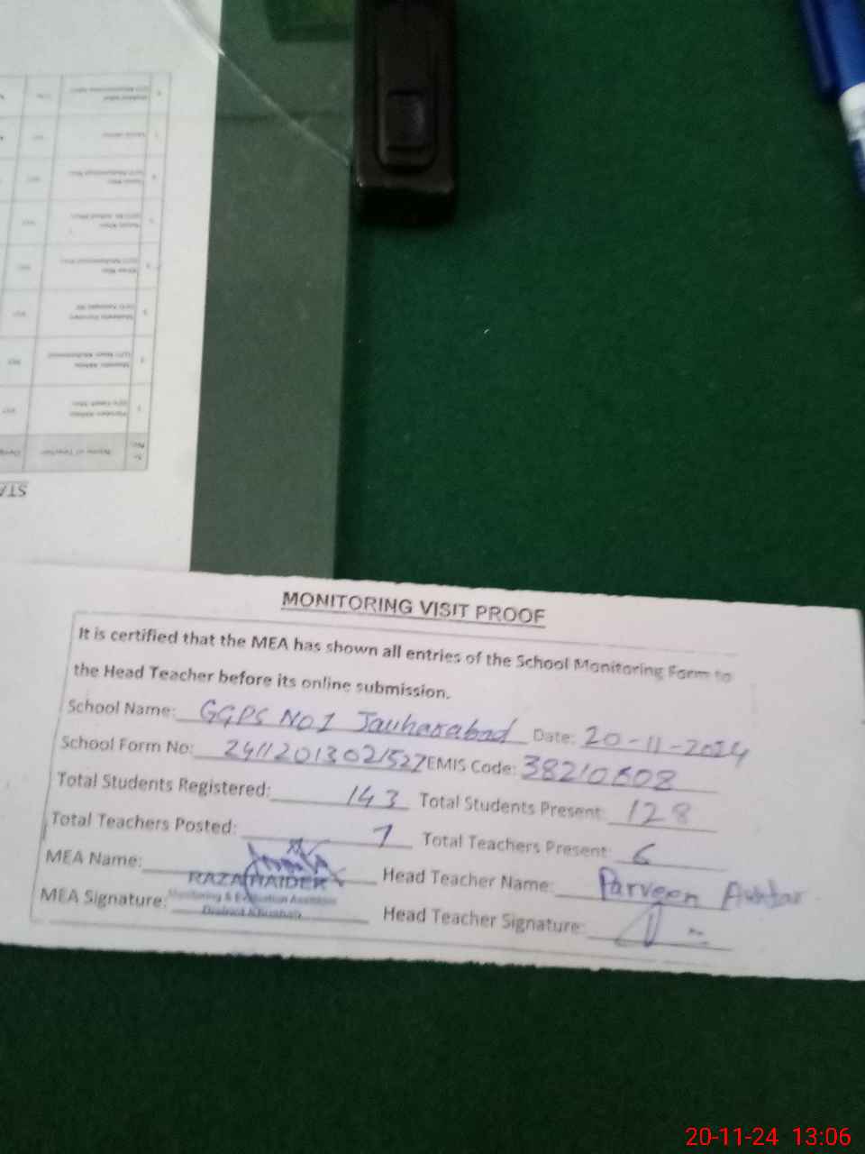 | EMIS Code: 38210608 | Name of School: GGPS NO. 1 JAUHARABAD | |||