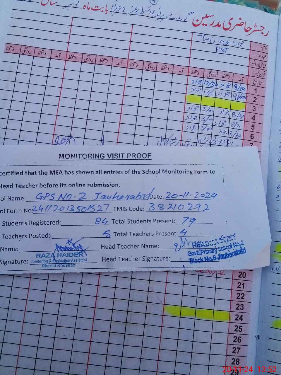 | EMIS Code: 38210292 | Name of School: GPS NO. 2 JAUHARABAD | |||