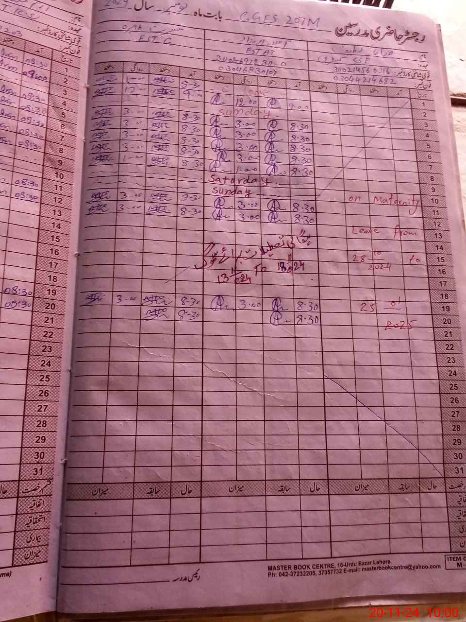 | Leave | Duty | Absent | Maternity | Medical | Ex- Pak |