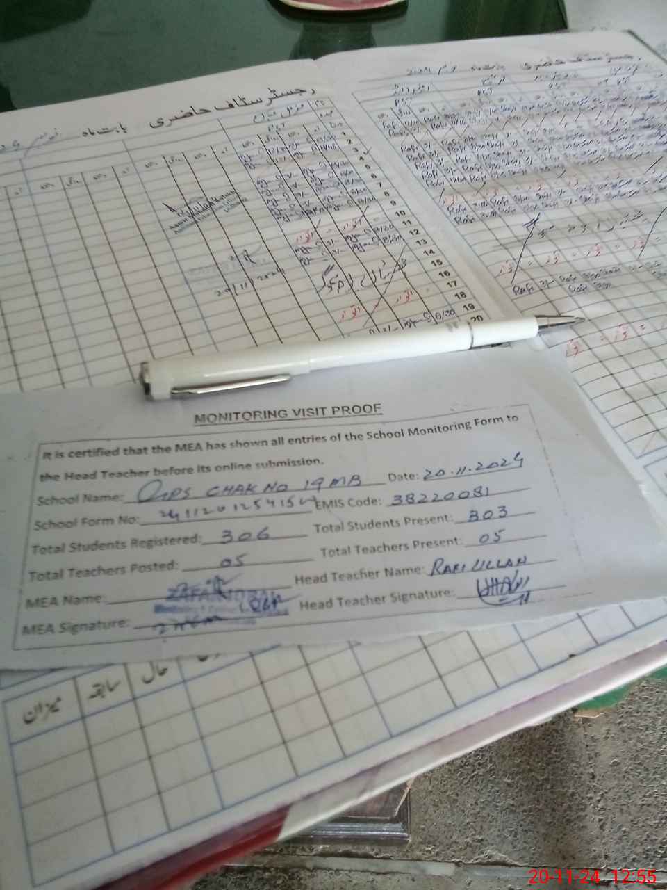 | EMIS Code: 38220081 | Name of School: GPS CHAK NO. 19 MB | |||