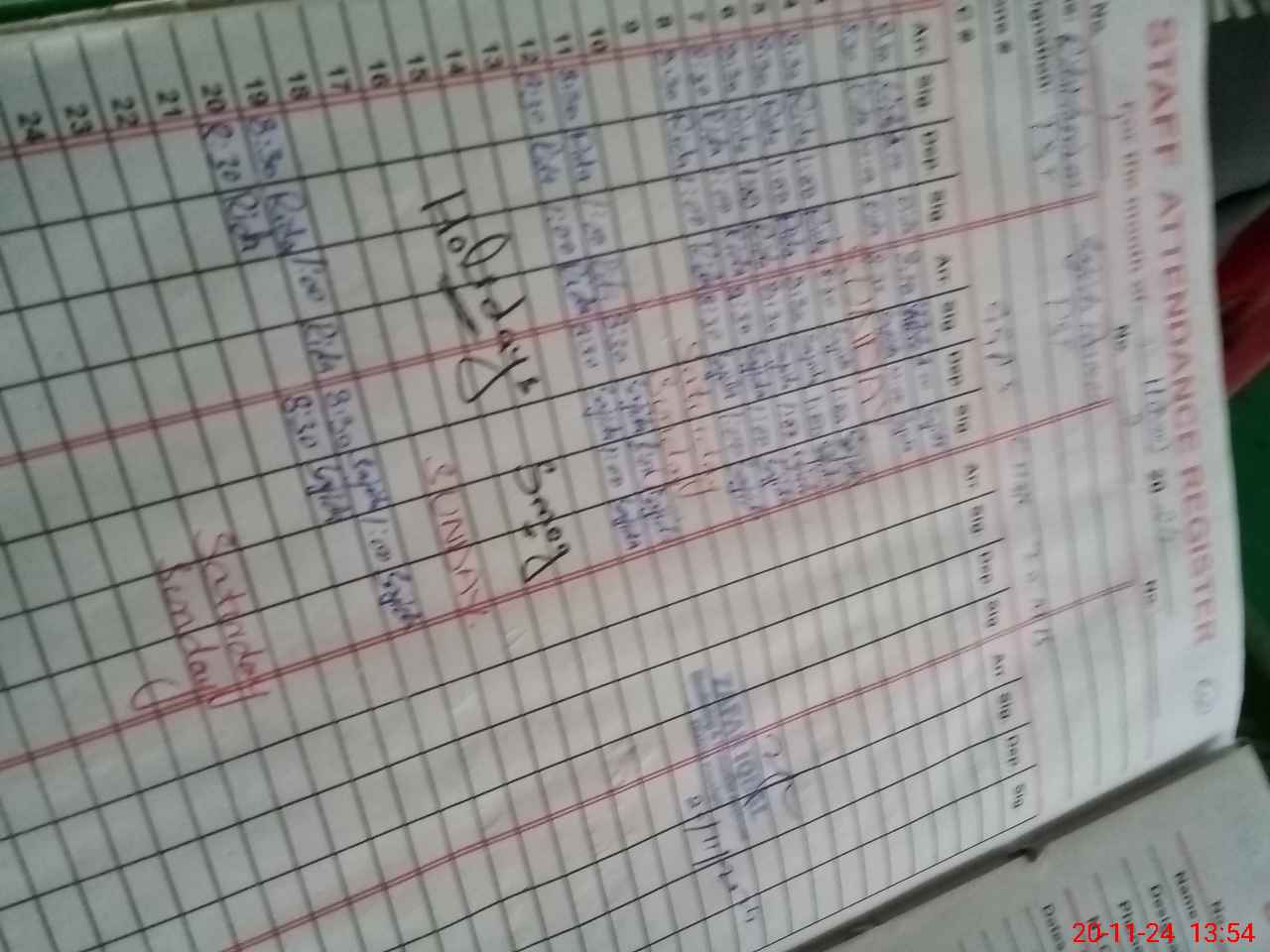 | CNIC | Full Name | Designation | R/C | Absence During Last Calender Month |