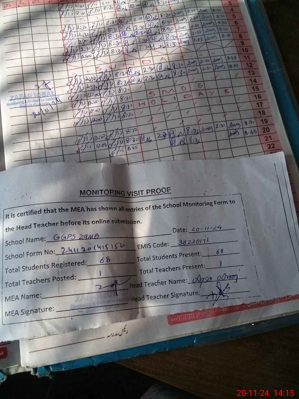 | EMIS Code: 38220171 | Name of School: GGPS CHAK NO 29 MB | |||