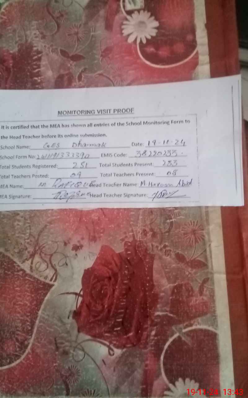 | Certified that this School was Inspected by the Undersigned MEA/DMO Today and the Information Stated Above is as Per Record. | |||||