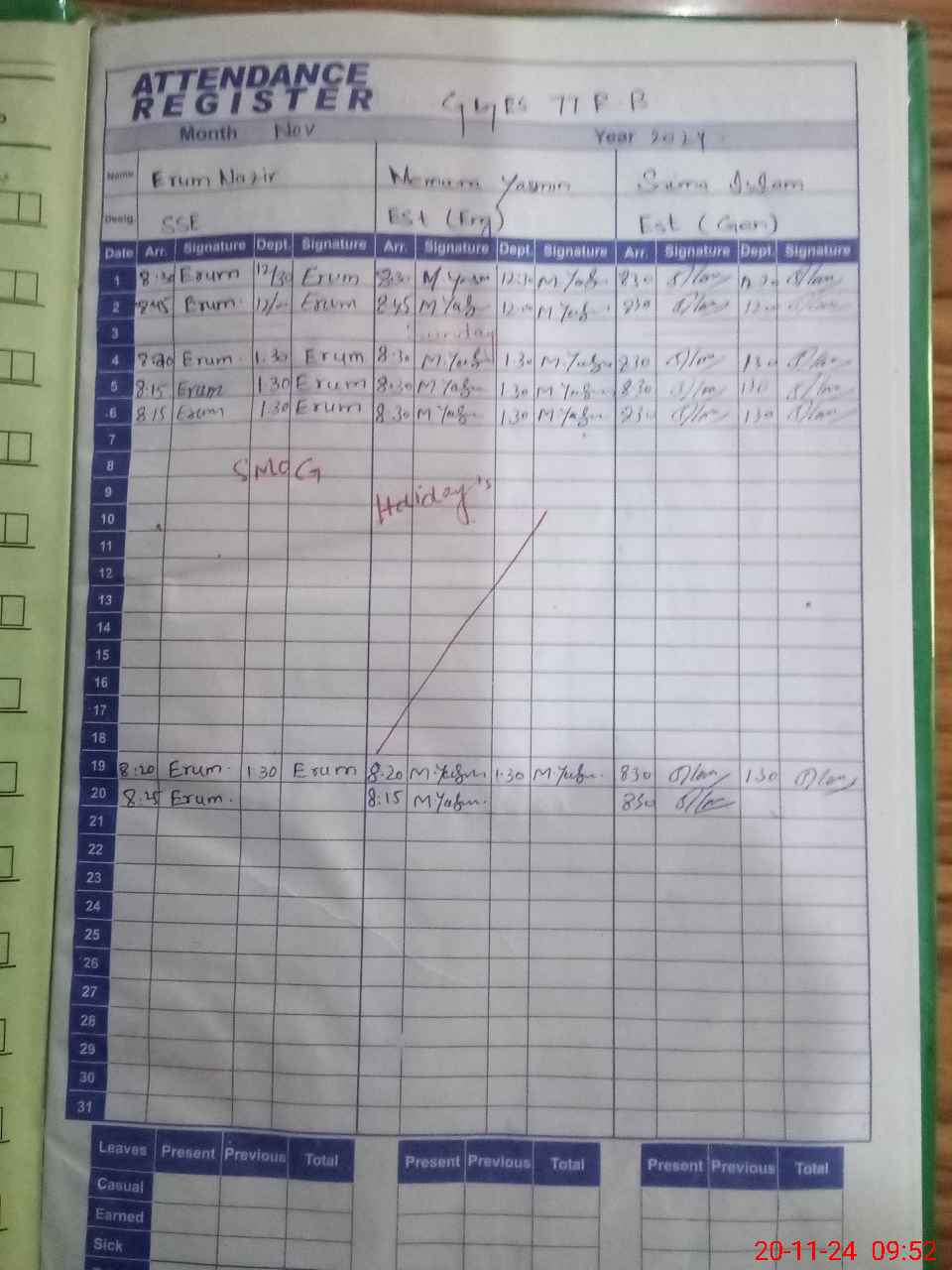 | Monitoring Date: 20-11-2024 | Start Time: 20-11-2024 09:31 AM | End Time: 20-11-2024 10:02 AM | Name of MEA: AB**** RA**** | |