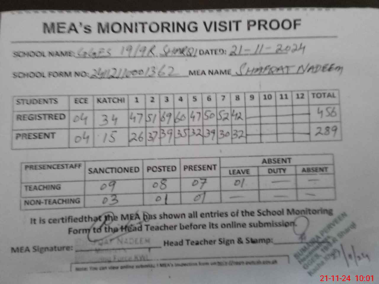 | EMIS Code: 36420471 | Name of School: GGES 19/9-R SHARQI, KACHA KHUH | |||