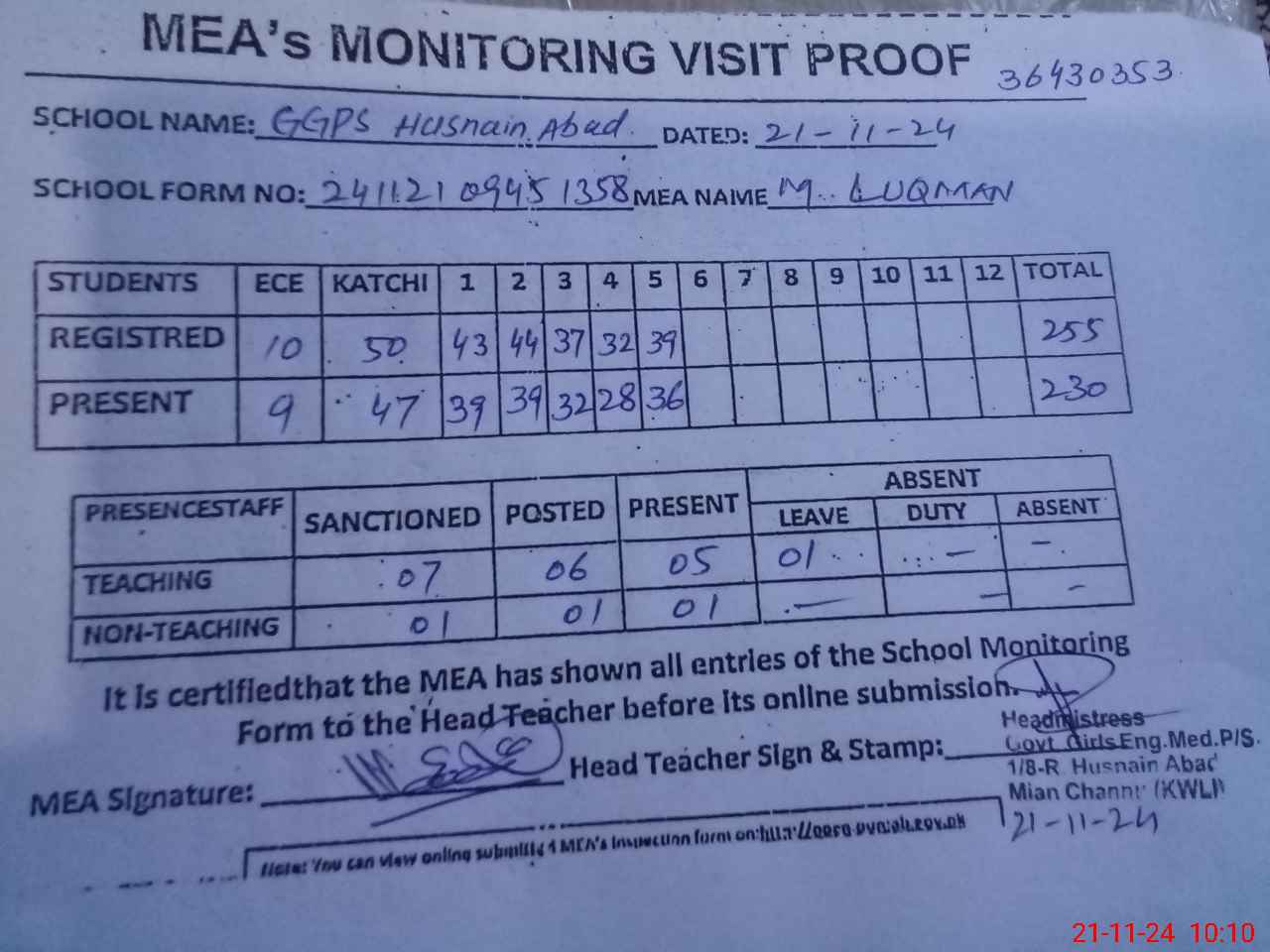 | EMIS Code: 36430353 | Name of School: GGPS HASNAIN ABAD MIAN CHANNU | |||