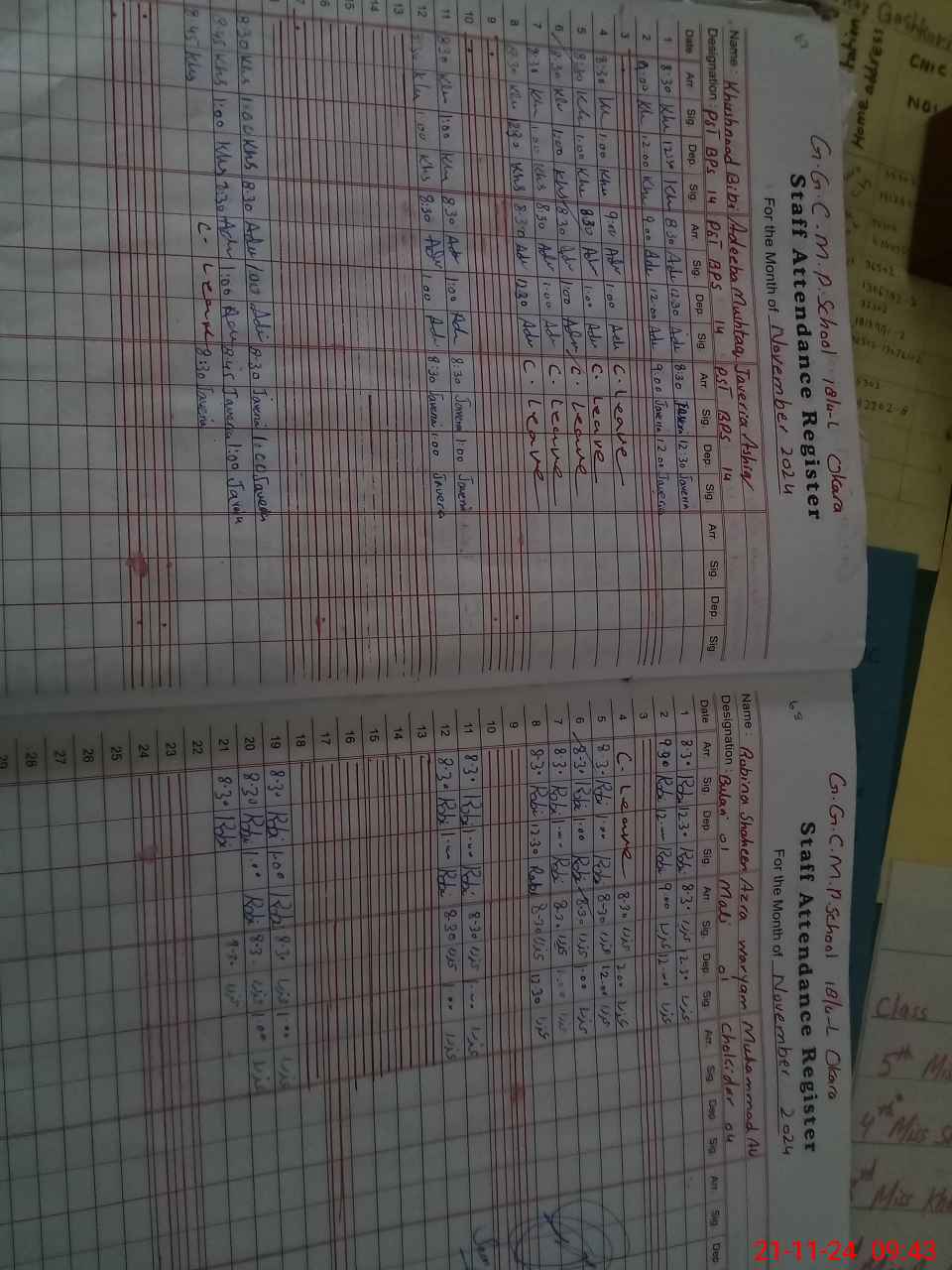 | CNIC | Full Name | Designation | R/C | Absence During Last Calender Month |