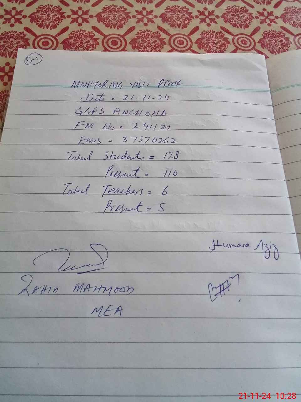| EMIS Code: 37370262 | Name of School: GGPS ANCHOHA | |||