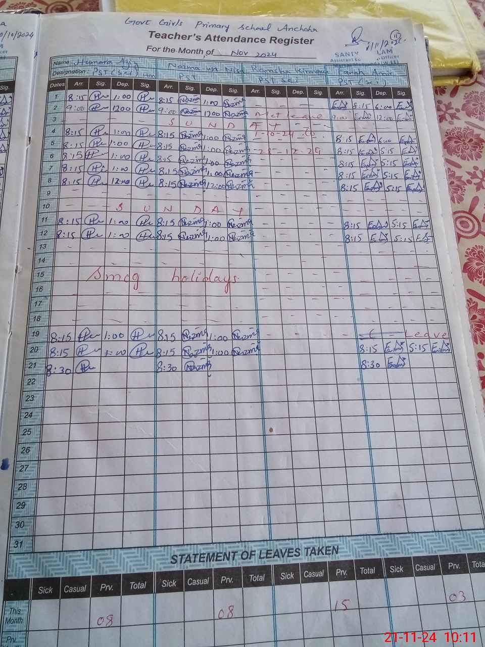 | 37**** | Ra**** Ki**** | PST | Regular | 31 | 0 | 0 | 31 | 0 | 0 | 0 | 0 | 0 | Maternity |