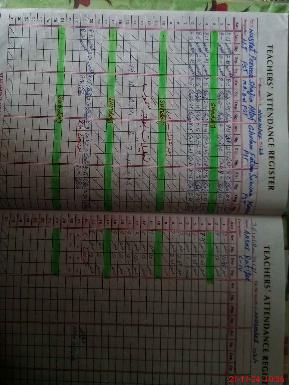 | CNIC | Full Name | Designation | R/C | Absence During Last Calender Month |