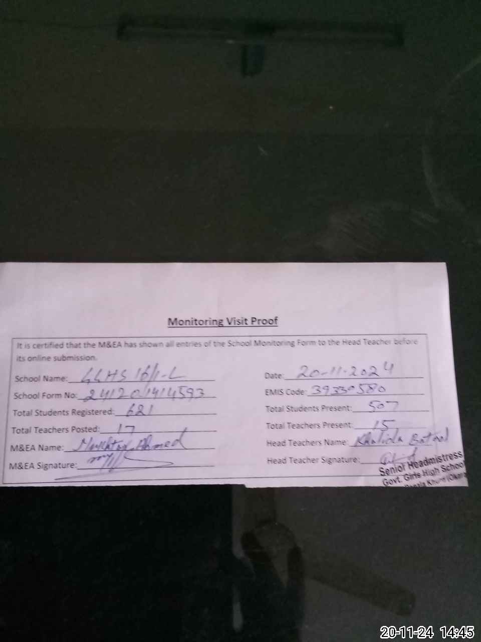 | EMIS Code: 39330580 | Name of School: GGHS 16/1-L | |||
