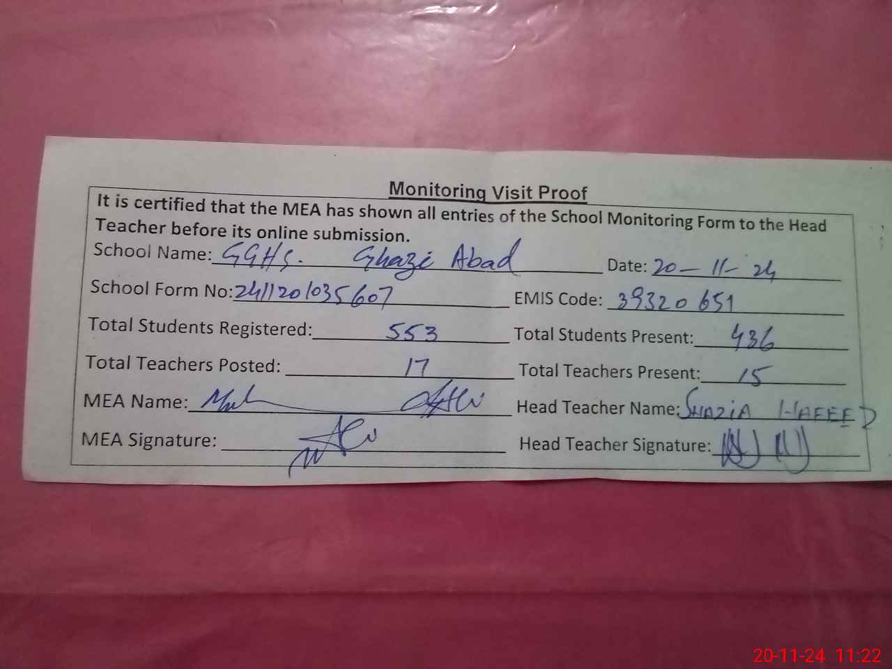 | EMIS Code: 39320651 | Name of School: GGHS GHAZI ABAD | |||