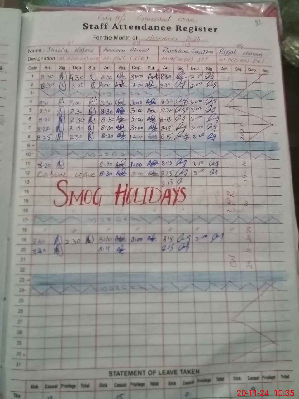 | Monitoring Date: 20-11-2024 | Start Time: 20-11-2024 10:35 AM | End Time: 20-11-2024 11:24 AM | Name of MEA: MO**** AL**** (R**** | |