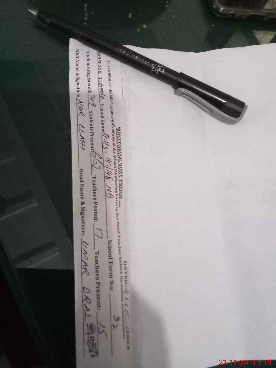 | Attendance Register | Head Teacher | MEA with School | Visit Proof |