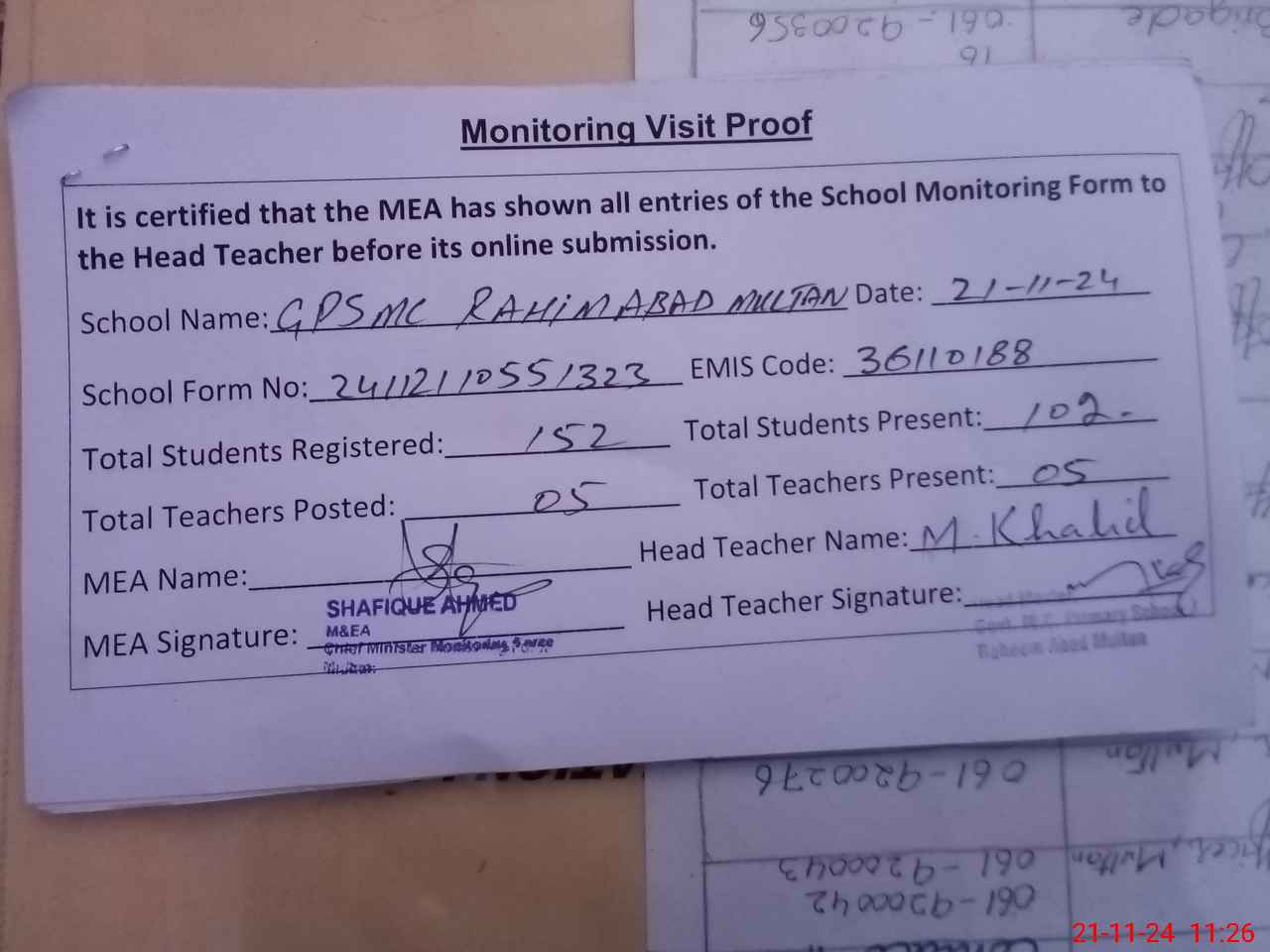 | EMIS Code: 36110188 | Name of School: GPS MC RAHIMABAD MULTAN | |||