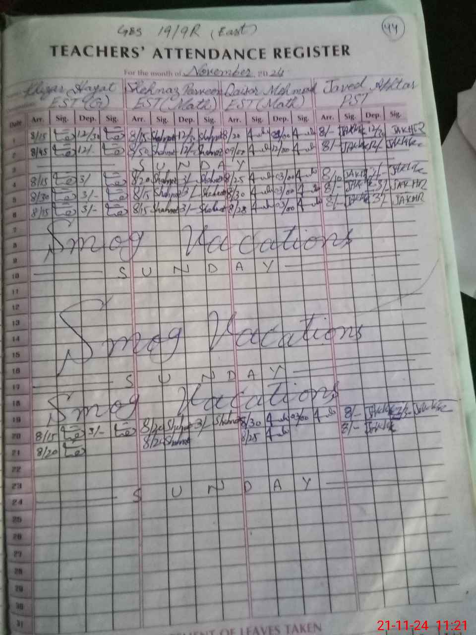 | CNIC | Full Name | Designation | R/C | Absence During Last Calender Month |