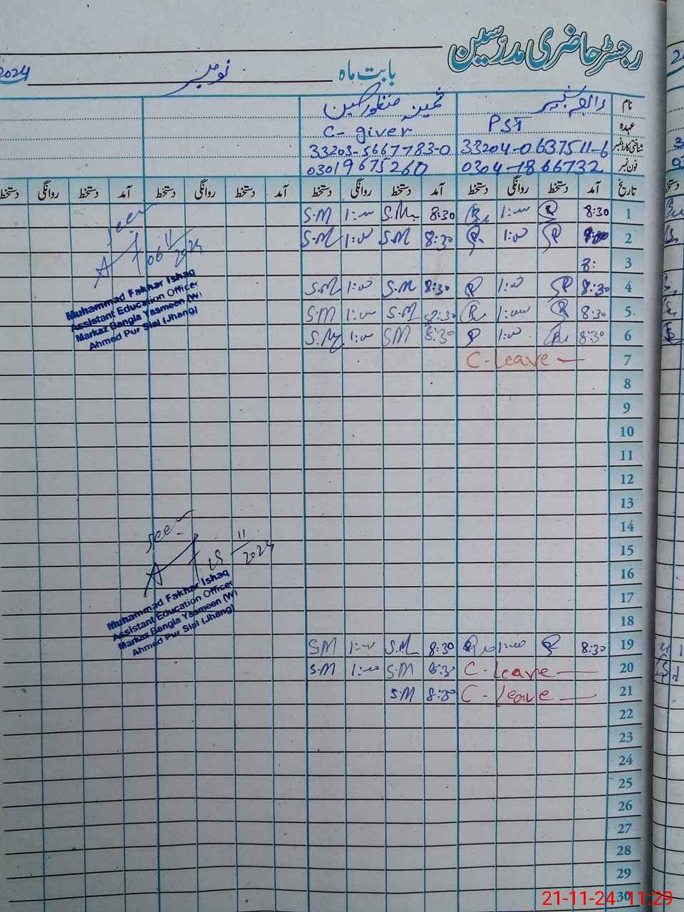 | Name: SA**** AK**** Designation: (School Headmaster's/Headmistress's) PST Phone/Cell Number: 03**** |
