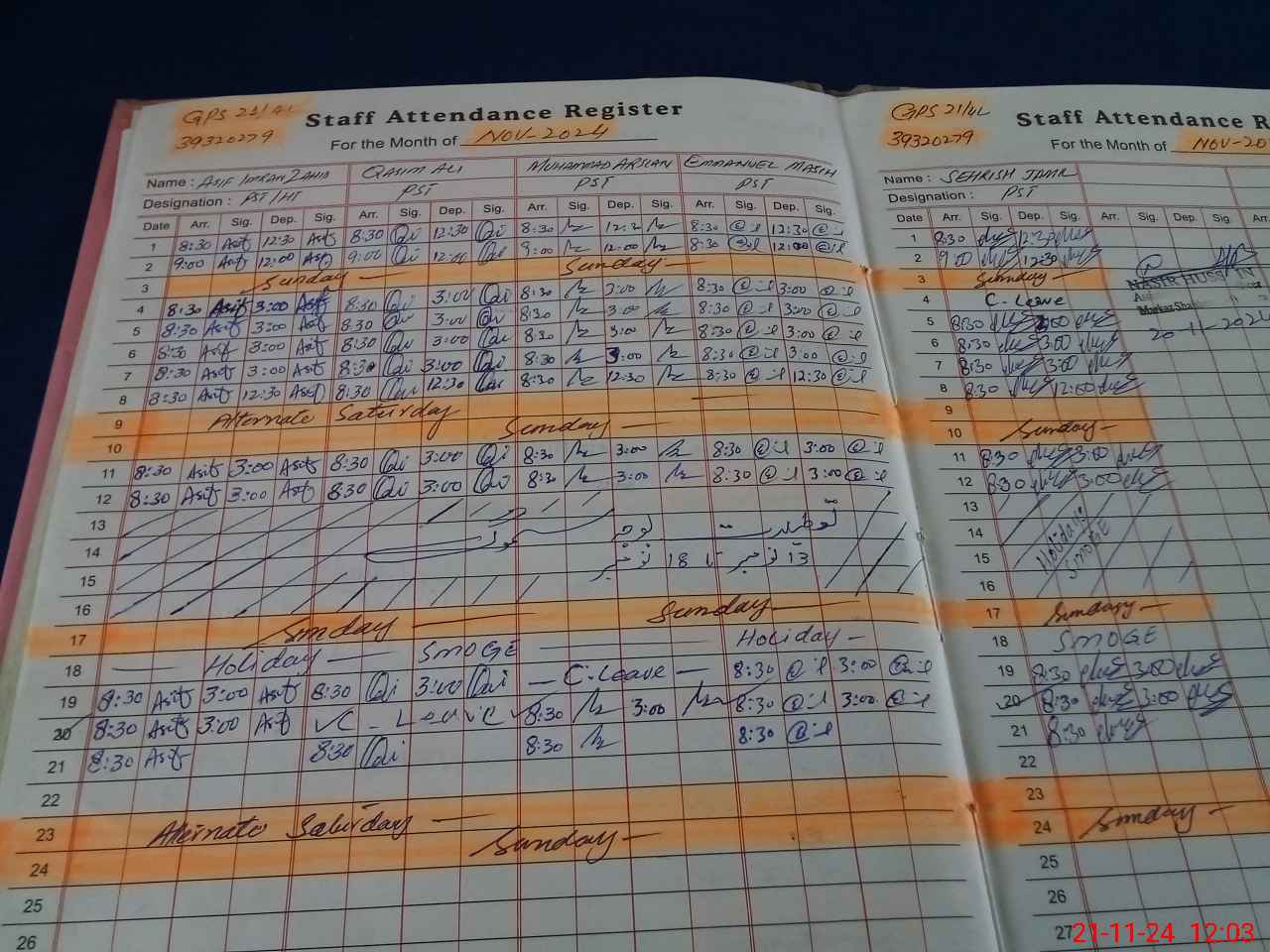 | CNIC | Full Name | Designation | R/C | Absence During Last Calender Month |