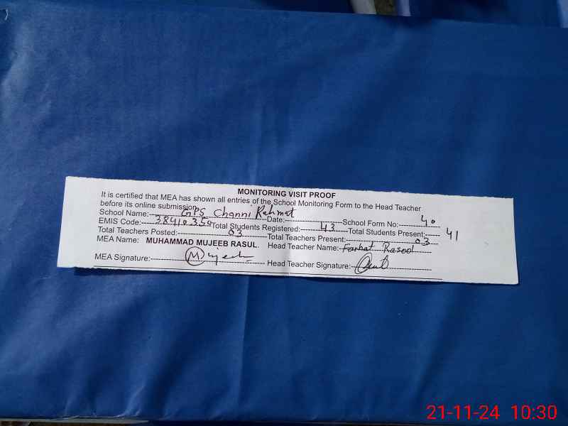 | EMIS Code: 38410350 | Name of School: GPS CHHANI RAHMAT KHAN | |||