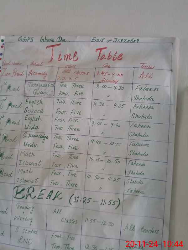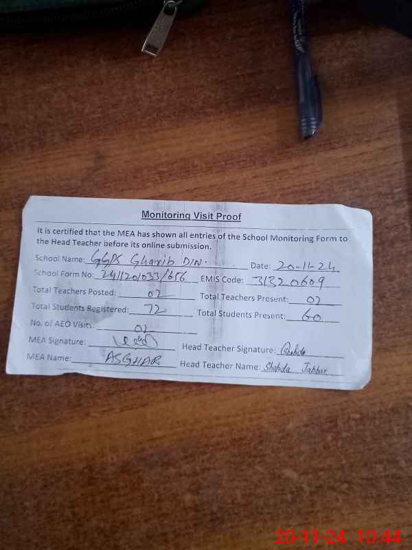 | EMIS Code: 31320609 | Name of School: GGPS GHARIB DIN | |||