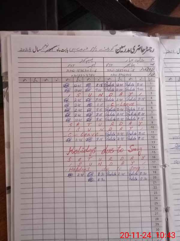 | Name: Sh**** Ja**** Designation: (School Headmaster's/Headmistress's) PST Phone/Cell Number: 03**** |