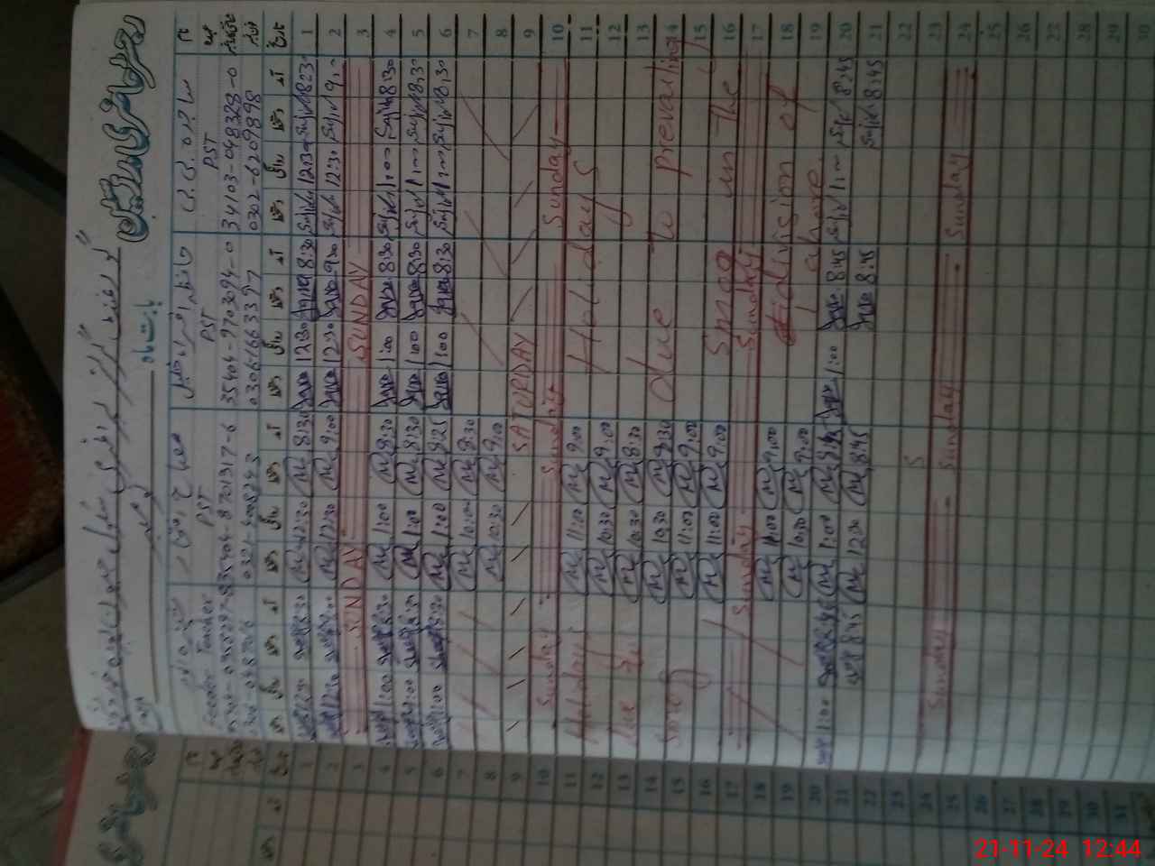 | CNIC | Full Name | Designation | R/C | Absence During Last Calender Month |