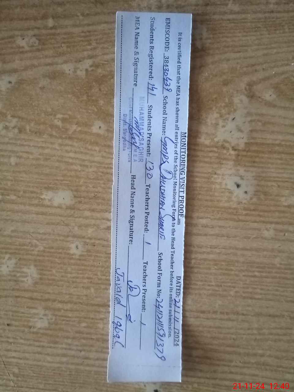 | EMIS Code: 38430439 | Name of School: GMPS DHUDIAN SHARIF | |||