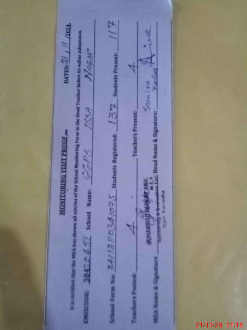 | EMIS Code: 38420651 | Name of School: GGPS ISSA NAGAR | |||