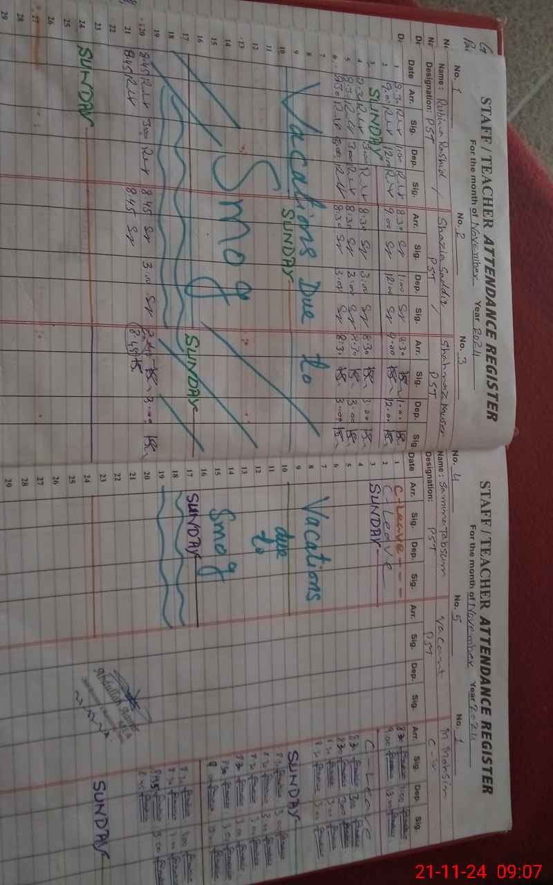 | CNIC | Full Name | Designation | R/C | Absence During Last Calender Month |