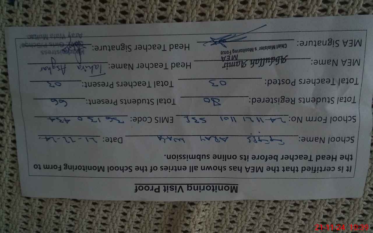 | Certified that this School was Inspected by the Undersigned MEA/DMO Today and the Information Stated Above is as Per Record. | |||||