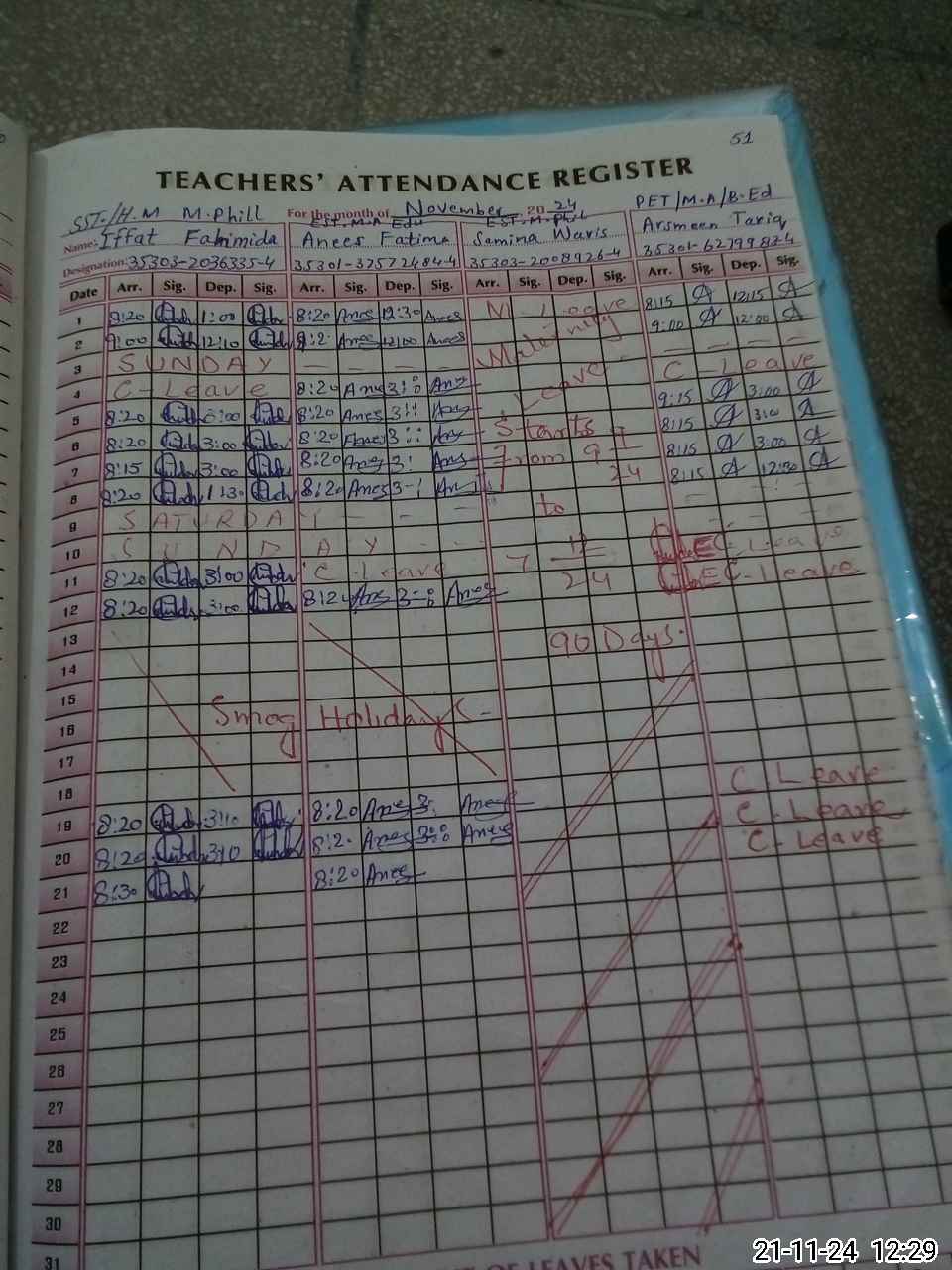 | 35**** | Uz**** Na**** | PST | Regular | 4 | 0 | 0 | 0 | 0 | 0 | 0 | 0 | 4 | Casual |
