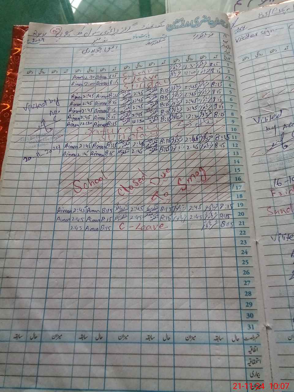 | CNIC | Full Name | Designation | R/C | Absence During Last Calender Month |