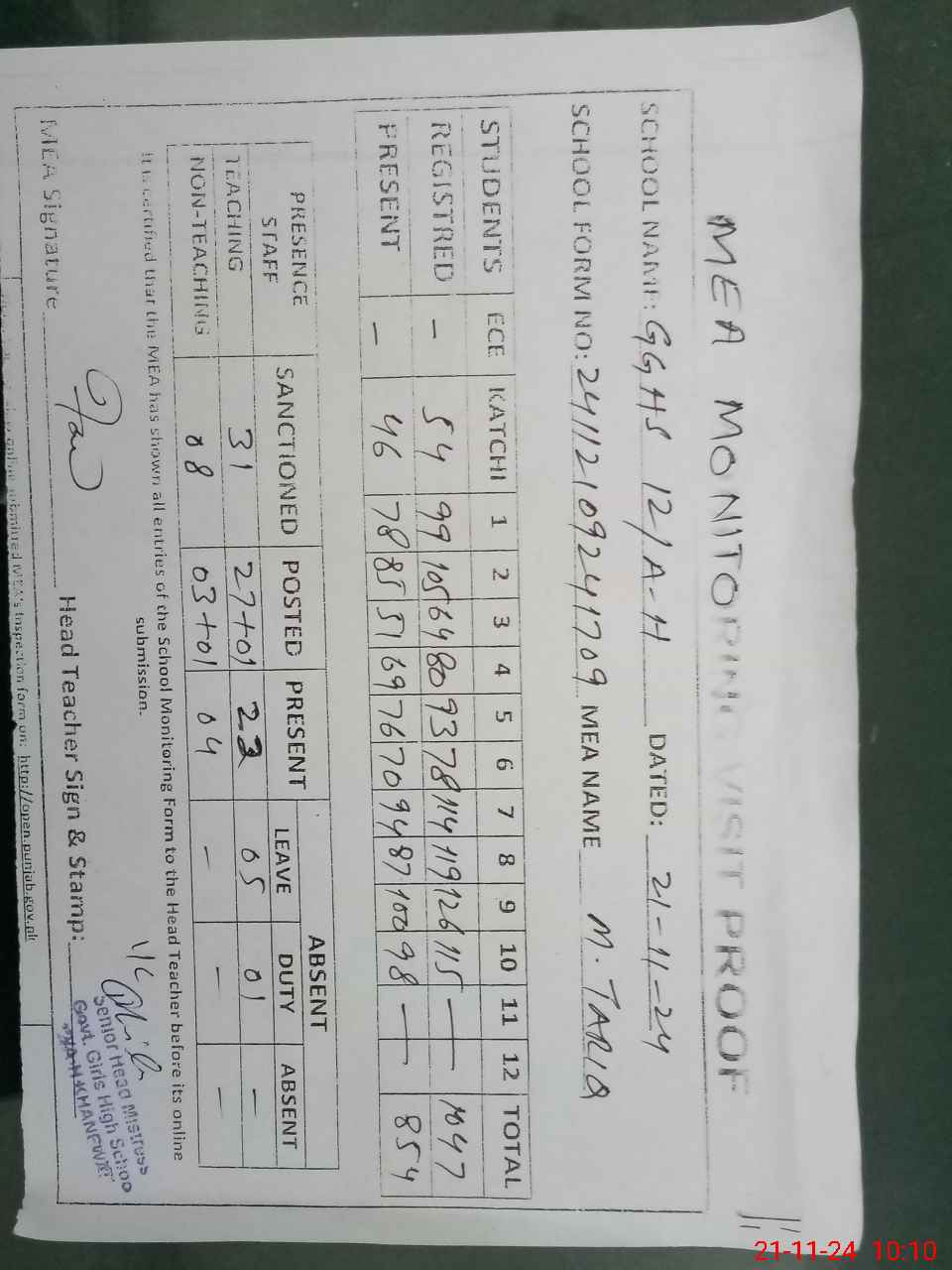 | EMIS Code: 36420046 | Name of School: GGHS 12/AH, KHANEWAL | |||