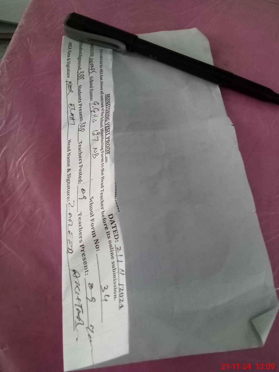 | Attendance Register | Head Teacher | MEA with School | Visit Proof |