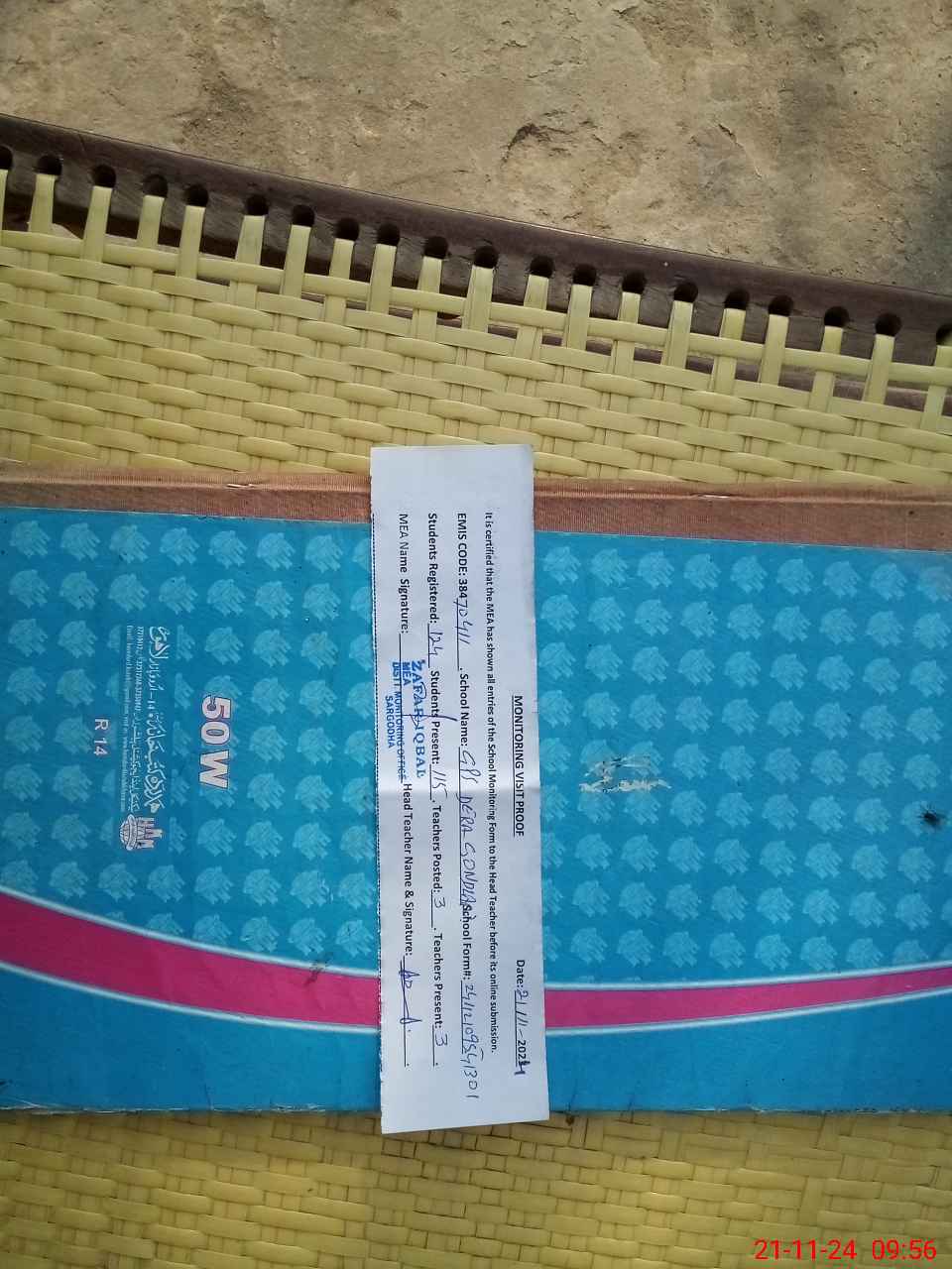 | District: SARGODHA | Tehsil: BHERA | Markaz: HAZOOR PUR - MALE | Level: Primary | |
