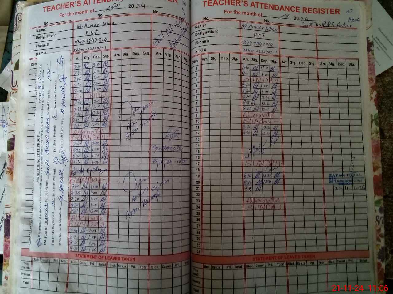 | 38**** | Sh**** Ar**** | 1 | 1 | 0 | 0 | 0 | 0 | 0 | 0 | 0 | 0 | 0 | Absent (Un-Authorized) |