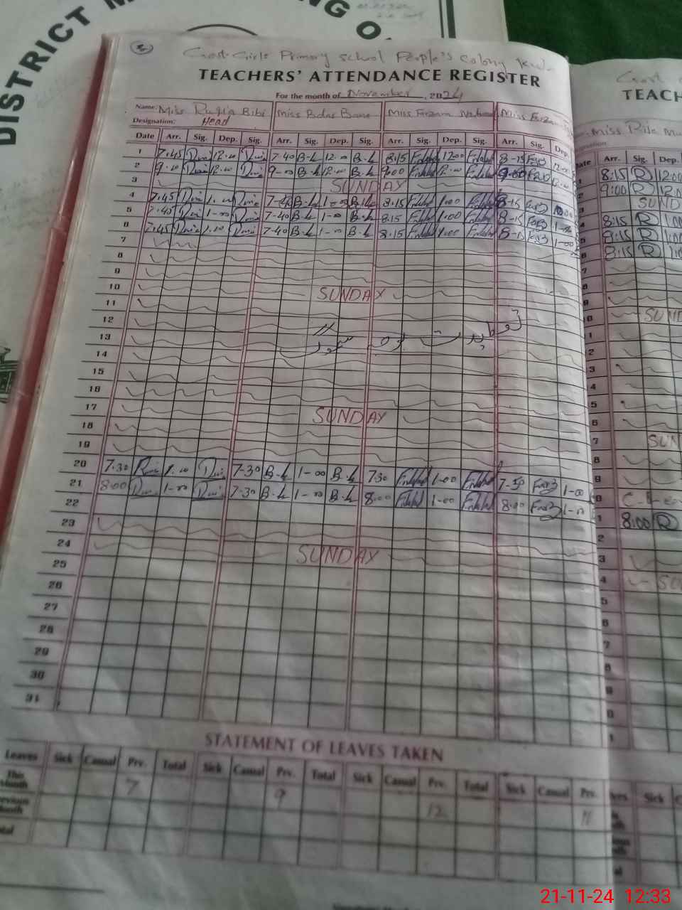 | CNIC | Full Name | Designation | R/C | Absence During Last Calender Month |