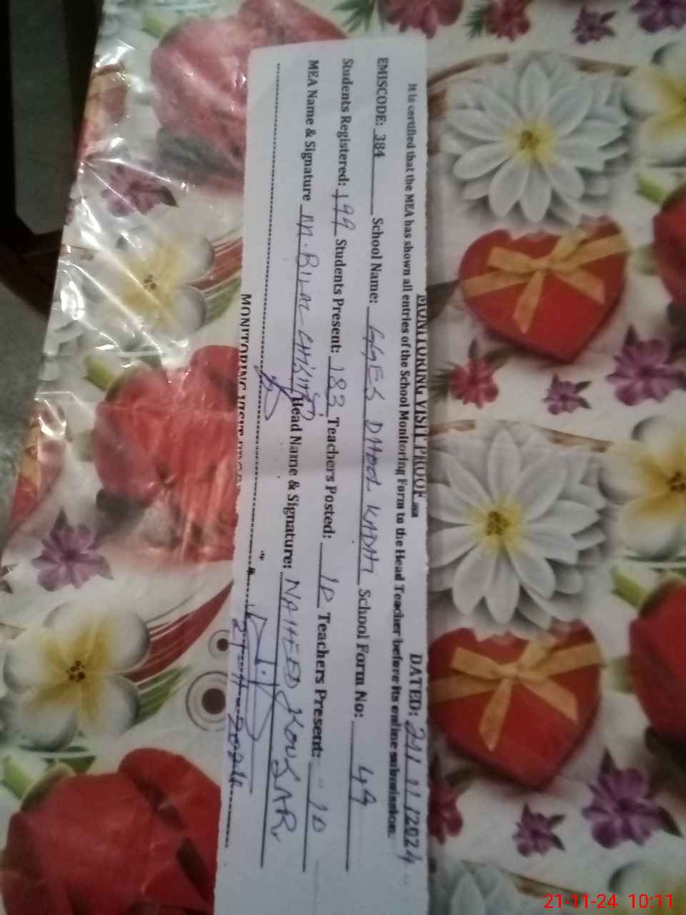 | Certified that this School was Inspected by the Undersigned MEA/DMO Today and the Information Stated Above is as Per Record. | |||||