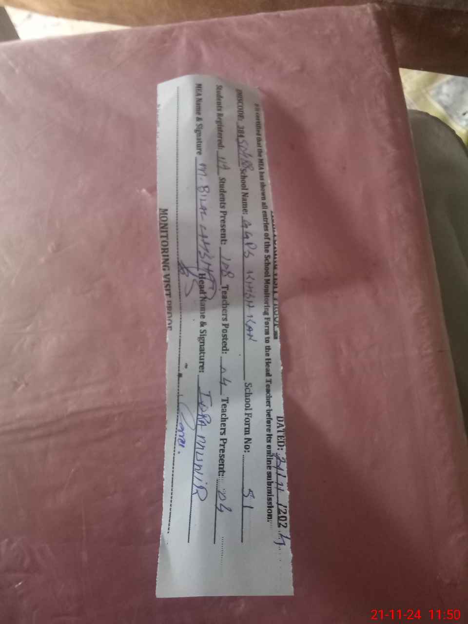| Attendance Register | Head Teacher | MEA with School | Visit Proof |