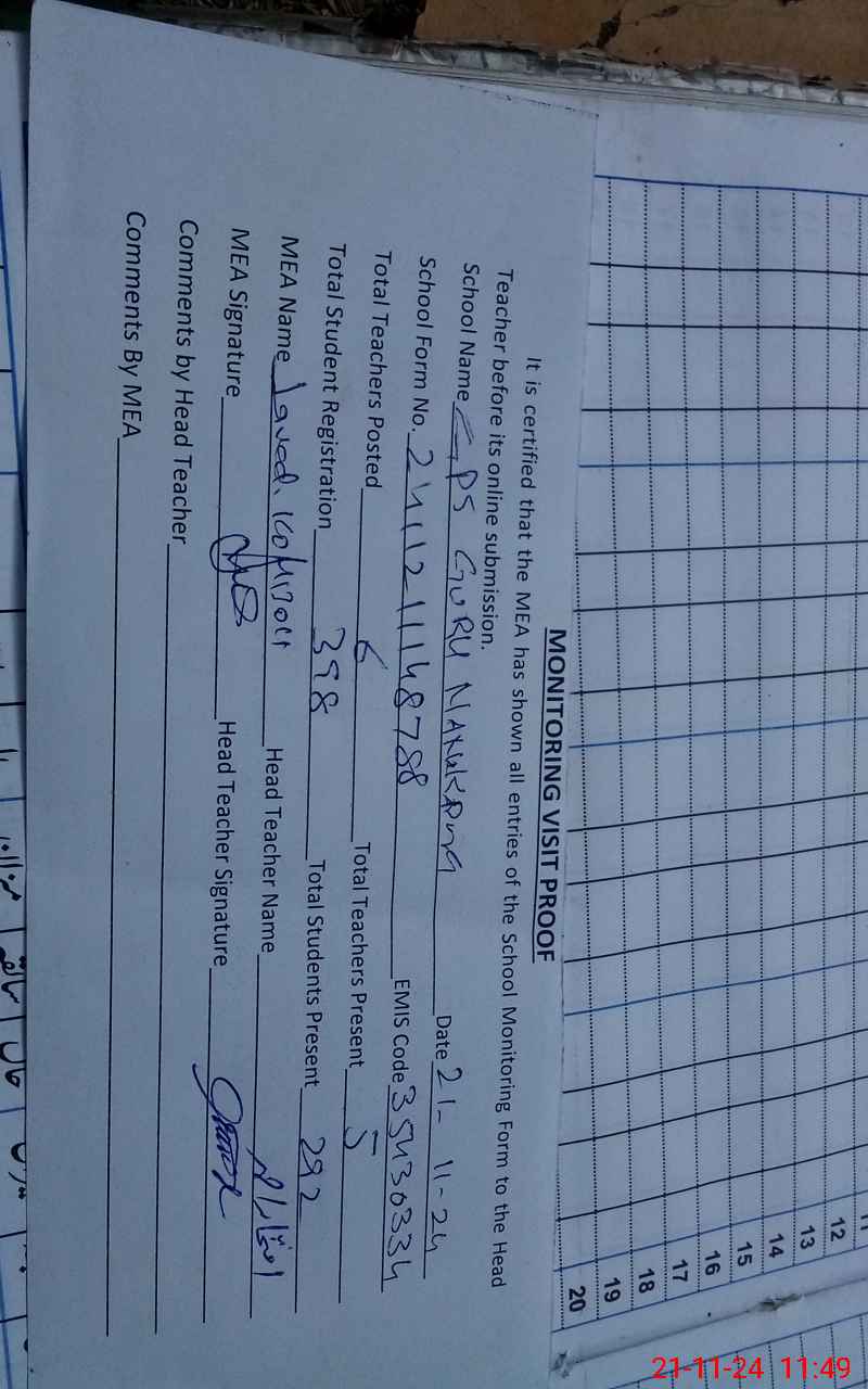 | EMIS Code: 35430334 | Name of School: GPS GURU NANAK PURA | |||