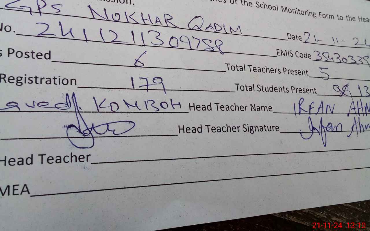 | EMIS Code: 35430339 | Name of School: GPS NOKHAR QADIM | |||