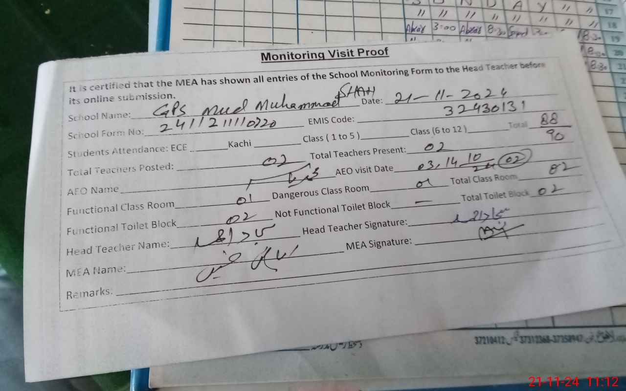 | EMIS Code: 32430131 | Name of School: GPS MUD MUHAMMAD SHAH | |||