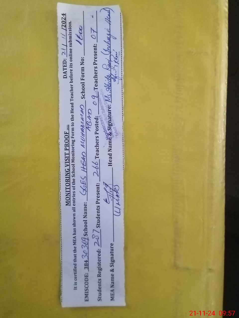 | EMIS Code: 38430369 | Name of School: GGES HEAD MUHAMMAD ABAD (Azad Colony) | |||
