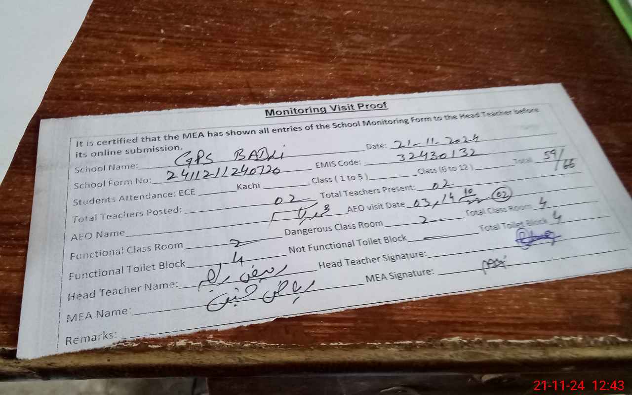 | EMIS Code: 32430132 | Name of School: GPS BADLI | |||