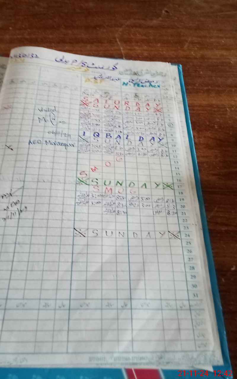 | CNIC | Full Name | Designation | R/C | Absence During Last Calender Month |