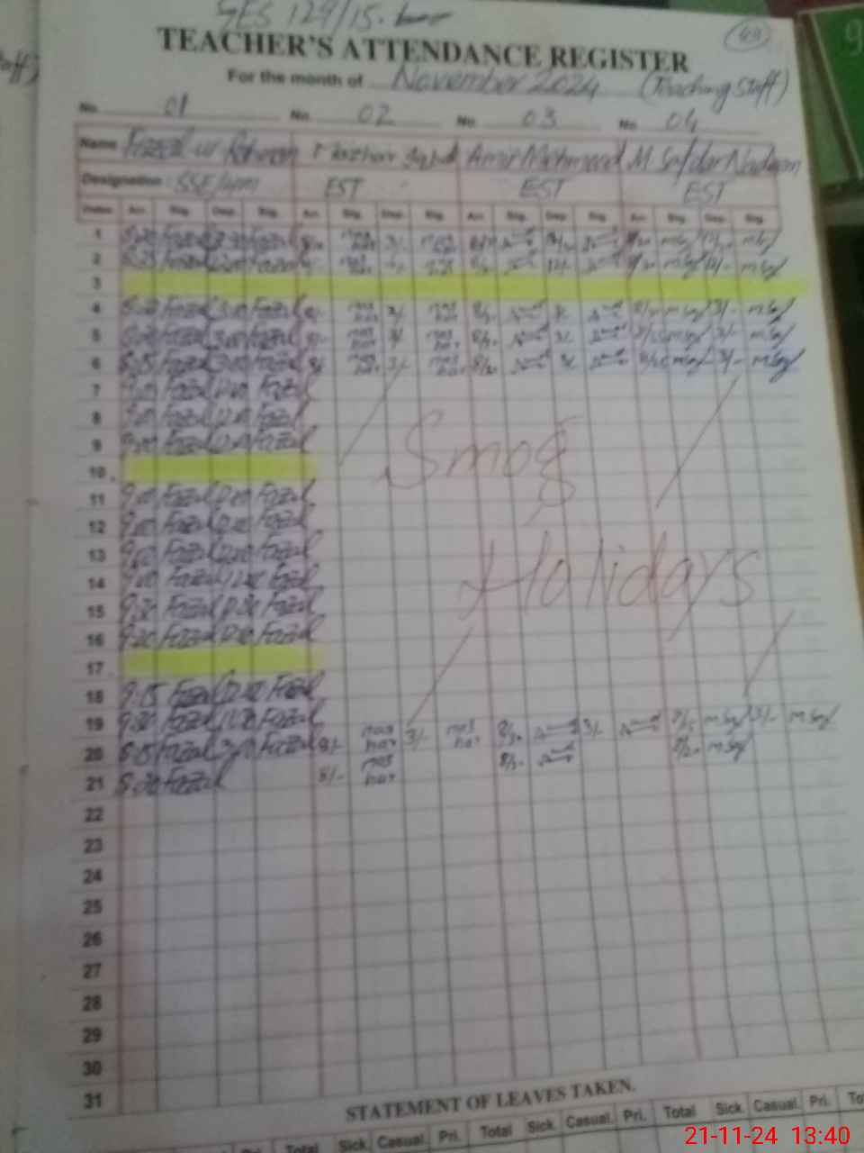 | Name: FA**** URRA**** Designation: (School Headmaster's/Headmistress's) SSE ENG Phone/Cell Number: 03**** |