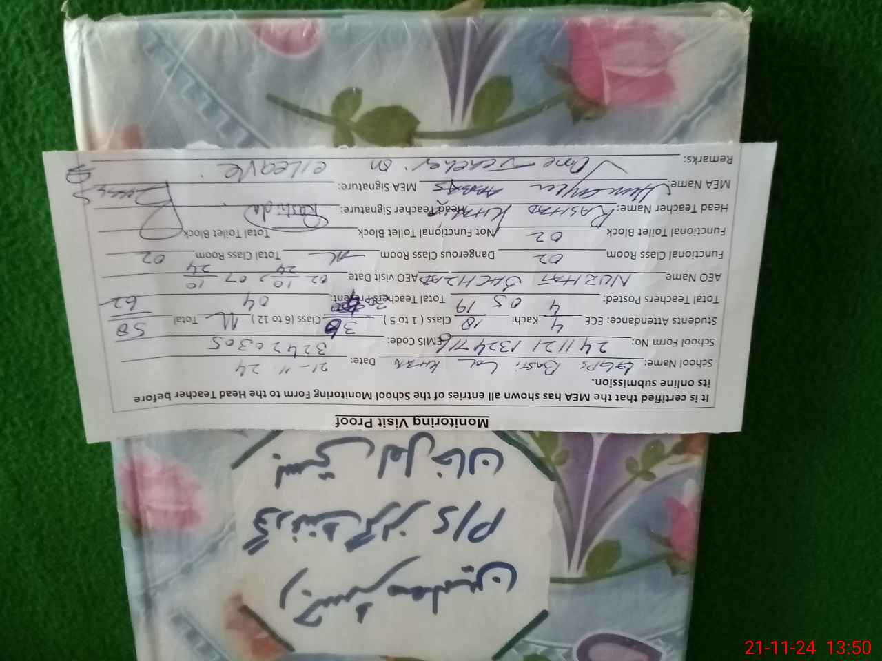 | Attendance Register | Head Teacher | MEA with School | Visit Proof |