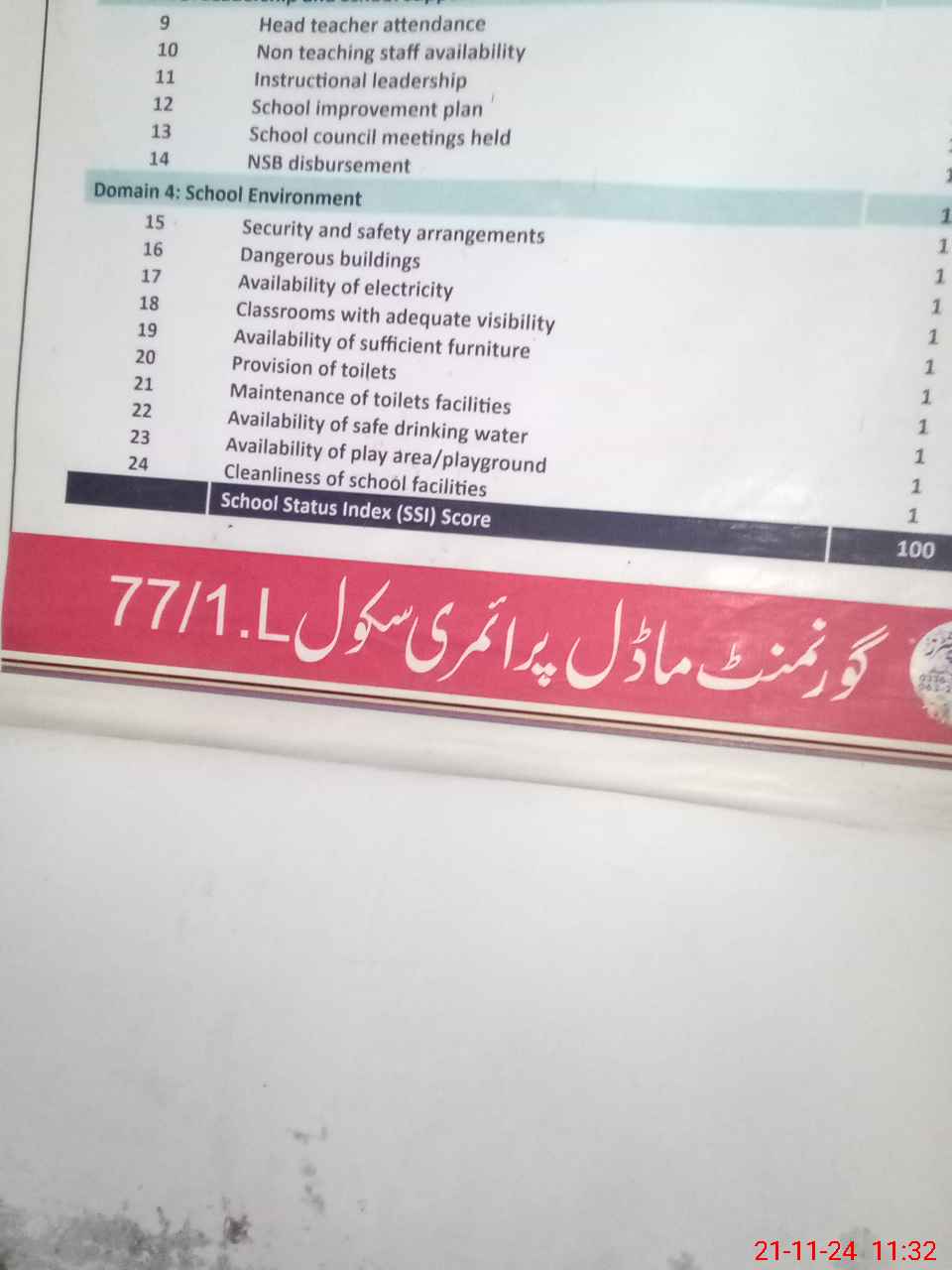 | EMIS Code: 31140302 | Name of School: GGPS 77/1-L HAROON ABAD | |||