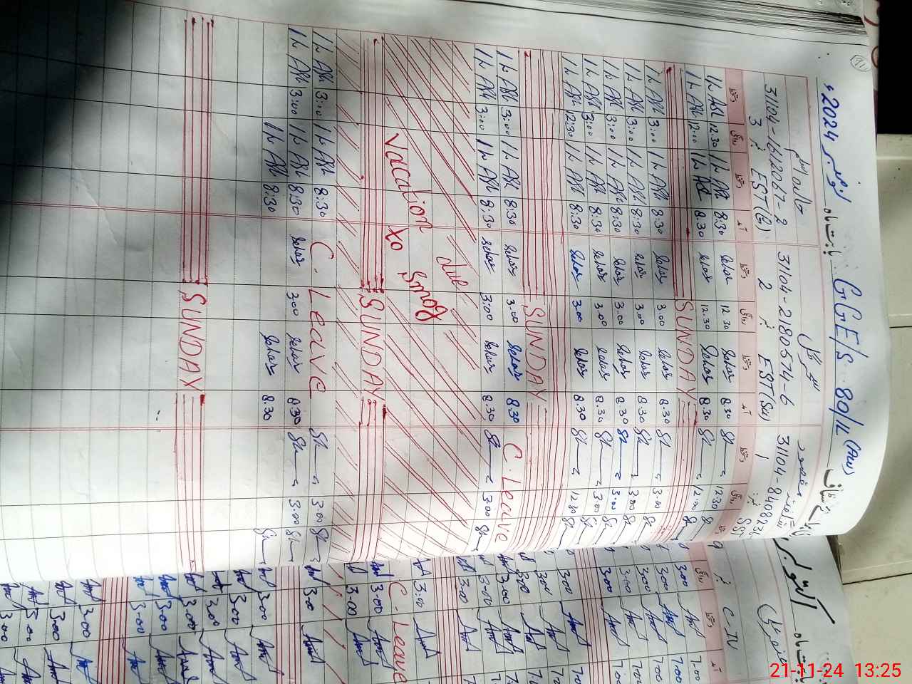 | Leave | Duty | Absent | Maternity | Medical | Ex- Pak |